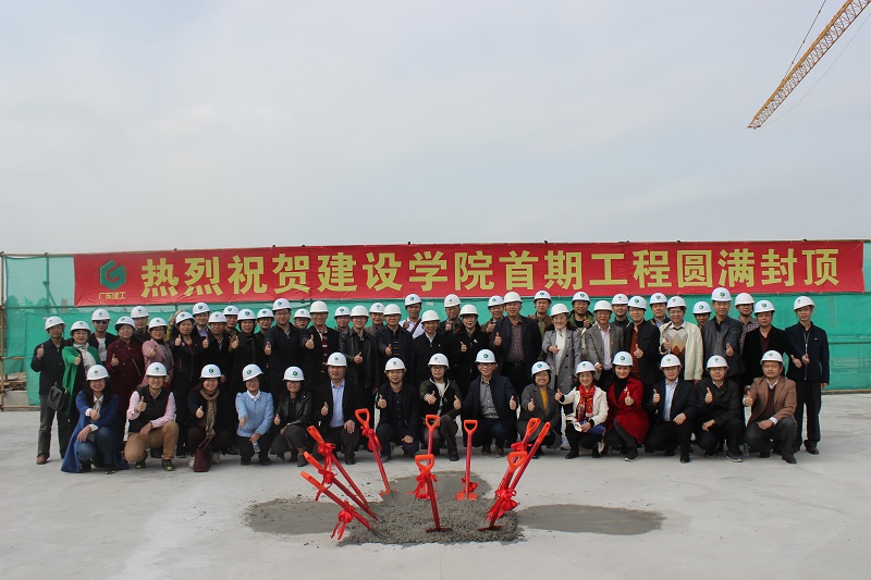 在封頂儀式上,葉飛松在致辭時興奮地說,幾代廣東建院建新校夢想已指日可待,他首先感謝籌建辦和所有建設(shè)者付出的辛勤勞動。他希望,在新校即將落成進(jìn)駐的收官時刻,大家鼓足干勁加油干,抓好建設(shè)新校區(qū)的最后一公里,實(shí)現(xiàn)9月初首批5000名學(xué)生進(jìn)駐的目標(biāo)。
